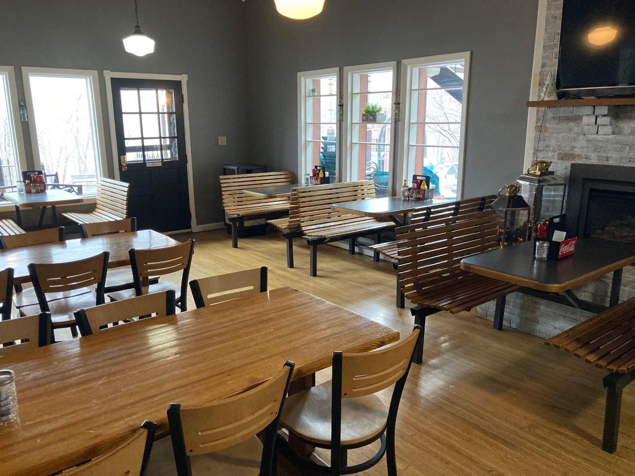 Entrepreneurs will love the flexible layout and multiple revenue streams this space can support. The main level features two public entrances, a welcoming ordering and display area perfect for food service or retail, a fully equipped commercial kitchen, and a spacious dining or showroom area highlighted by hardwood floors, large picture windows, and a cozy gas fireplace beneath soaring 12-foot tongue-and-groove ceilings.